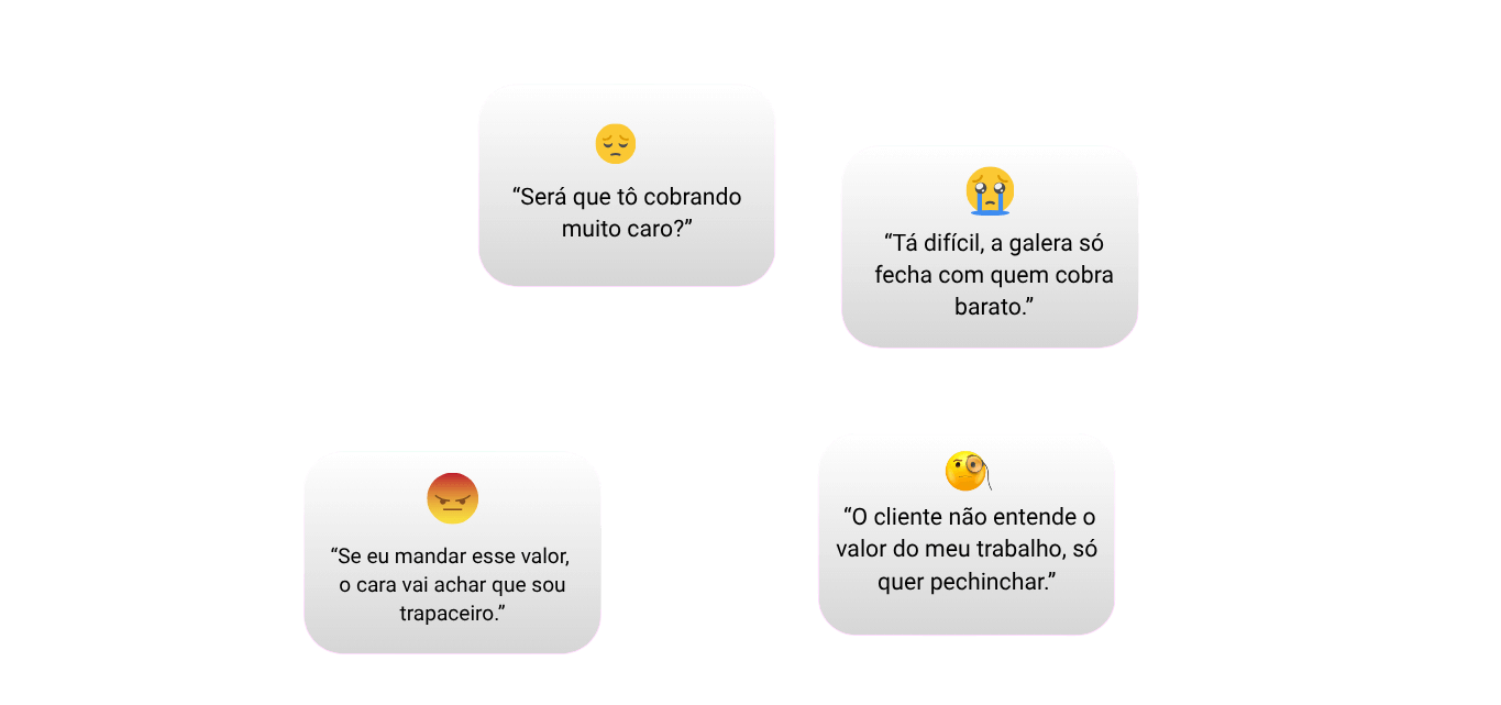 Viver com essa insegurança toda vez que precisa passar um orçamento. Ao invés de sentir confiança no seu trabalho, você fica travado, se perguntando se está cobrando caro demais…