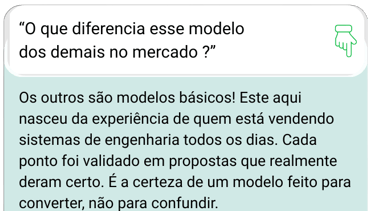 "Propostas 100% atualizadas! Não perco mais negócio por não ter diferencial. O Template é muito bom! Tá aprovado!👍🏽"