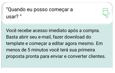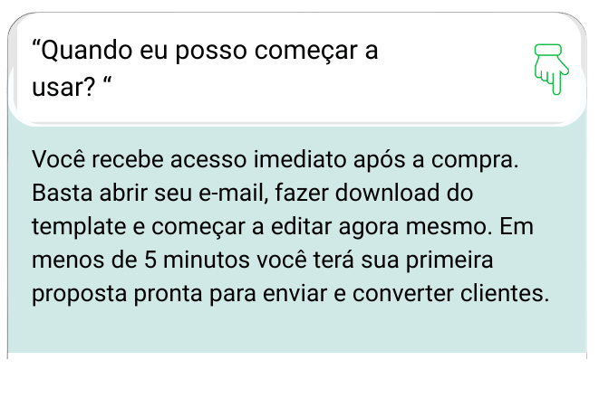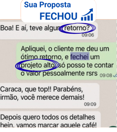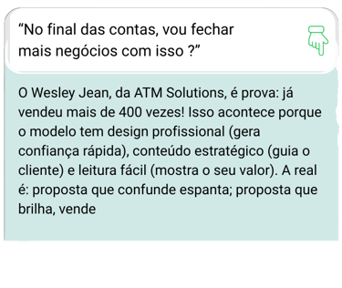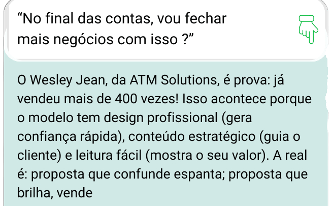 "Dica de ouro: propostas prontas para vender em 10 minutos! O Template me fez ganhar tempo e dinheiro."