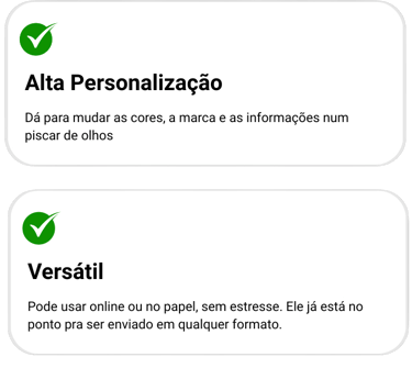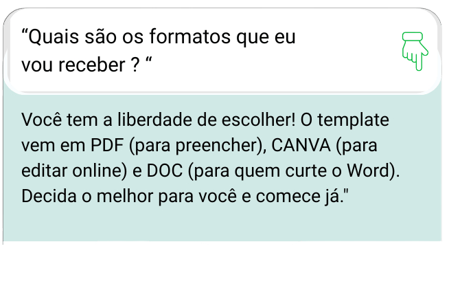 Você escolhe como quer editar a sua proposta: temos as versões PDF, CANVA e DOC à sua disposição.