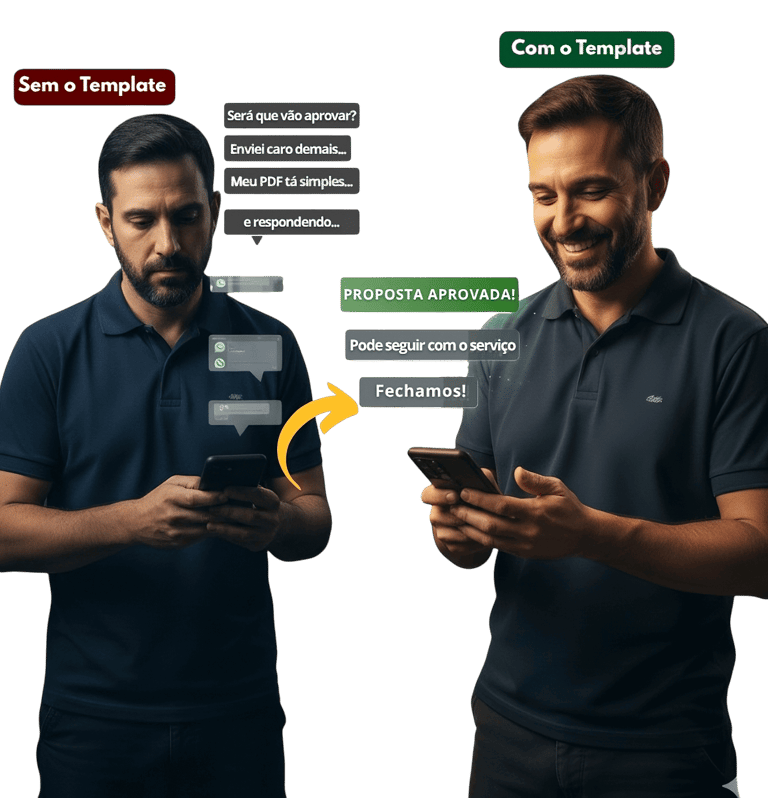 "Eu sentia que minhas propostas eram só custo, perdia muitos serviços! Com o template, a apresentação ficou profissional e tripliquei a aceitação de projetos!"